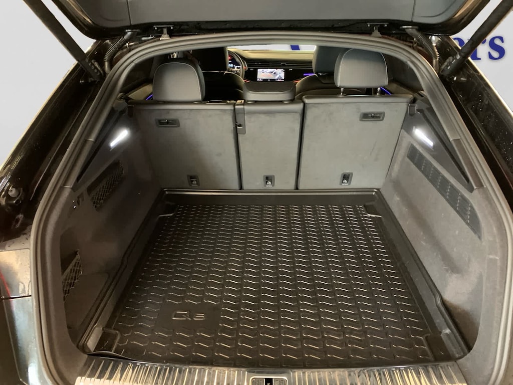 Navigation, Sunroof, Panoramic Roof, All Wheel Drive, Power Liftgate Audi Prestige with Mythos Black Metallic exterior and Black interior features a V6 Cylinder Engine with 335 HP at 5700 RPM*. AutoCheck One Owner CARFAX 1-Owner Rigorous 125+ point inspection performed by authorized Audi-trained technicians, $0 deductible for warranty service, 24-Hour Roadside Assistance for 1 year/20,000 miles, Audi CPO Limited Warranty is easily transferable to a subsequent private owner, Comprehensive Vehicle History Report is included, Additional 1 year/20,000 mile Limited Warranty beginning after New Car Warranty expires. This Q8 is priced $1,700 below J.D. Power Retail. Was $78,998.